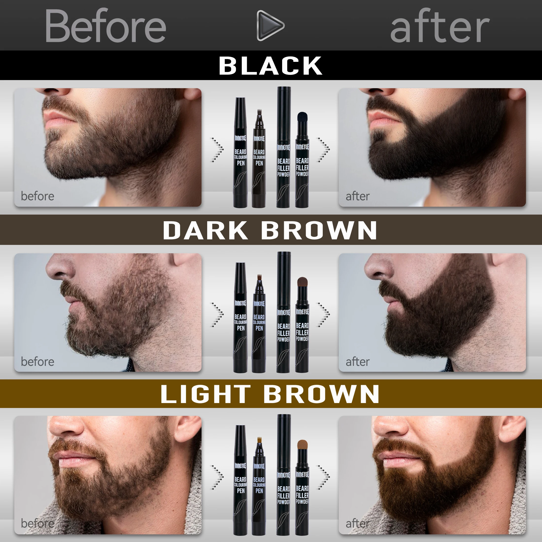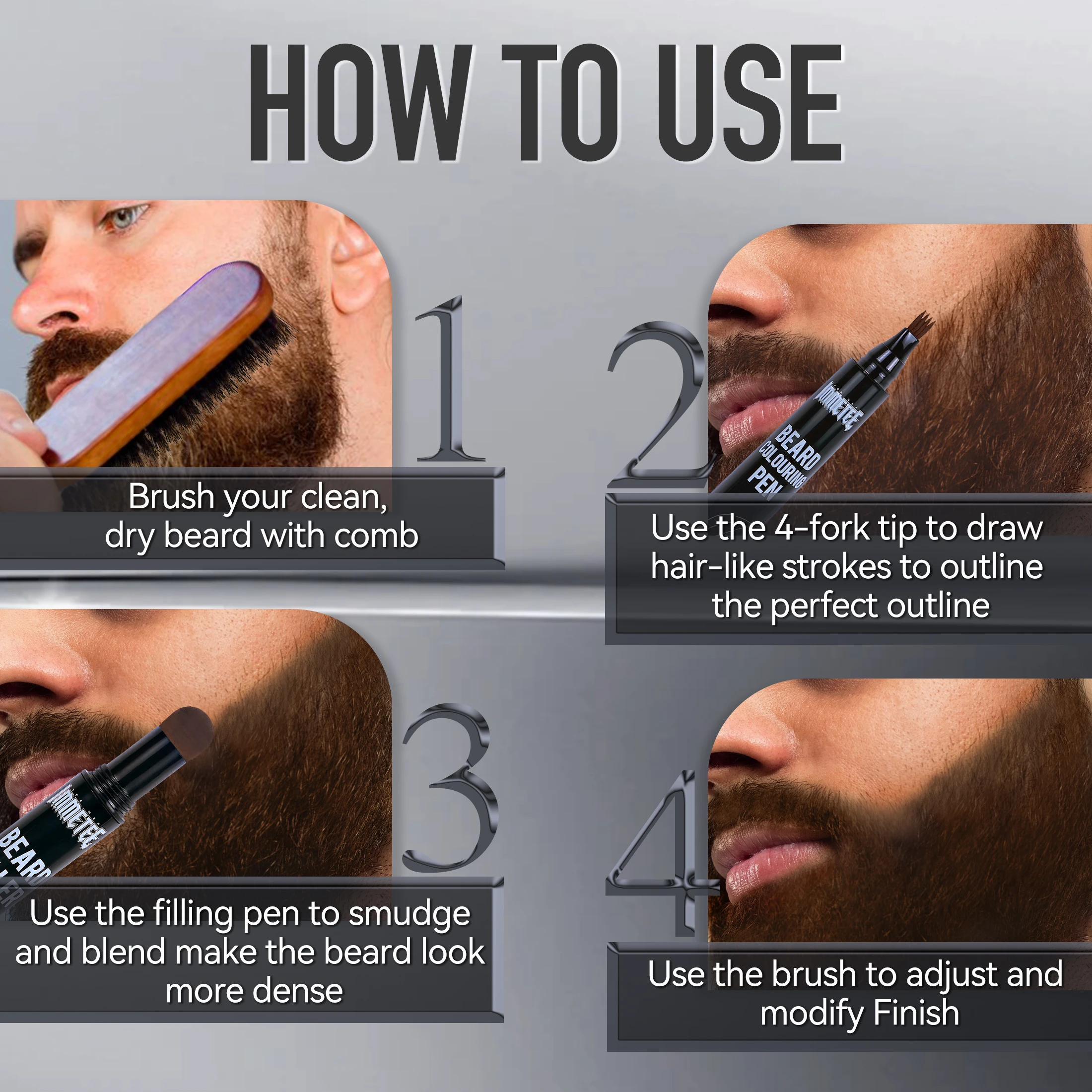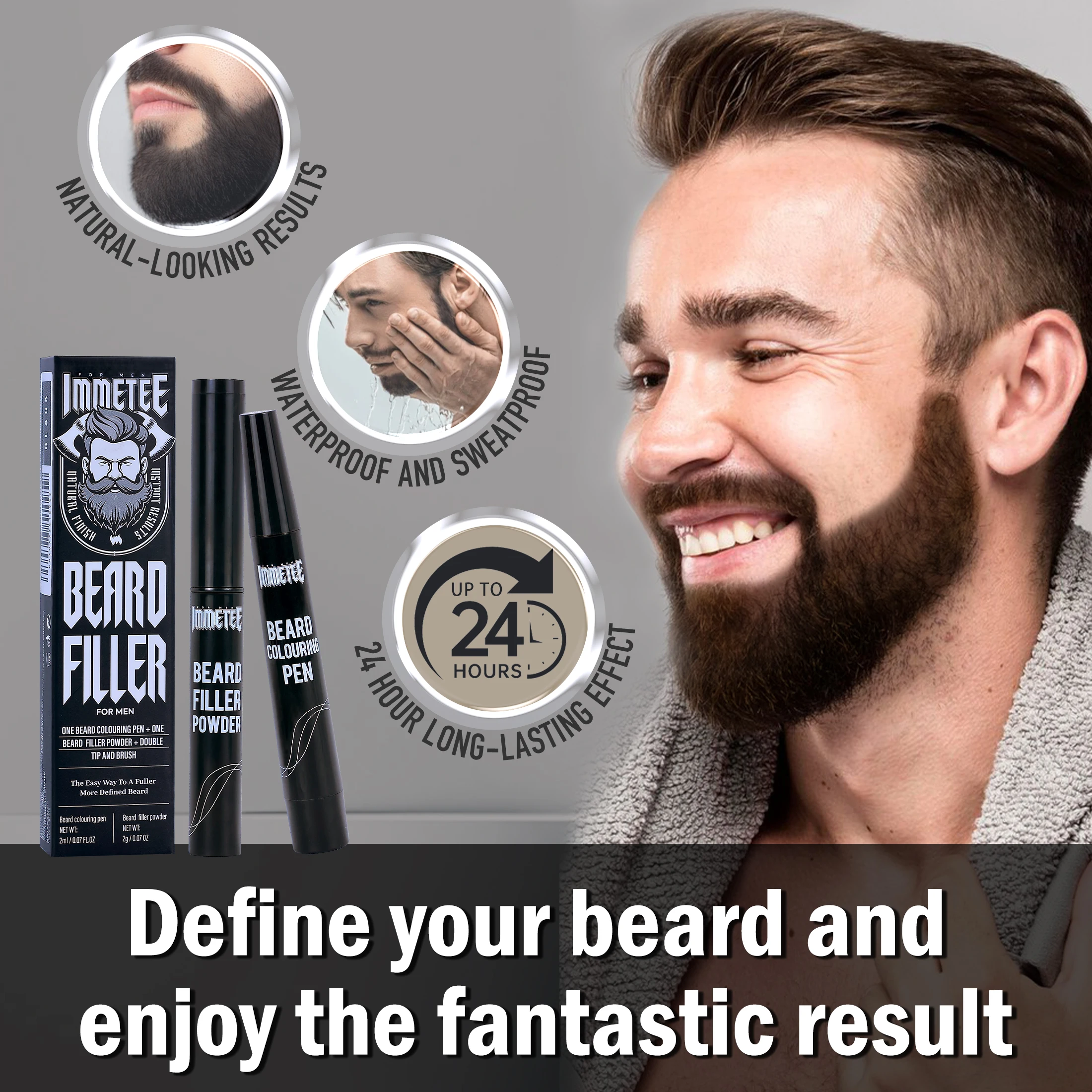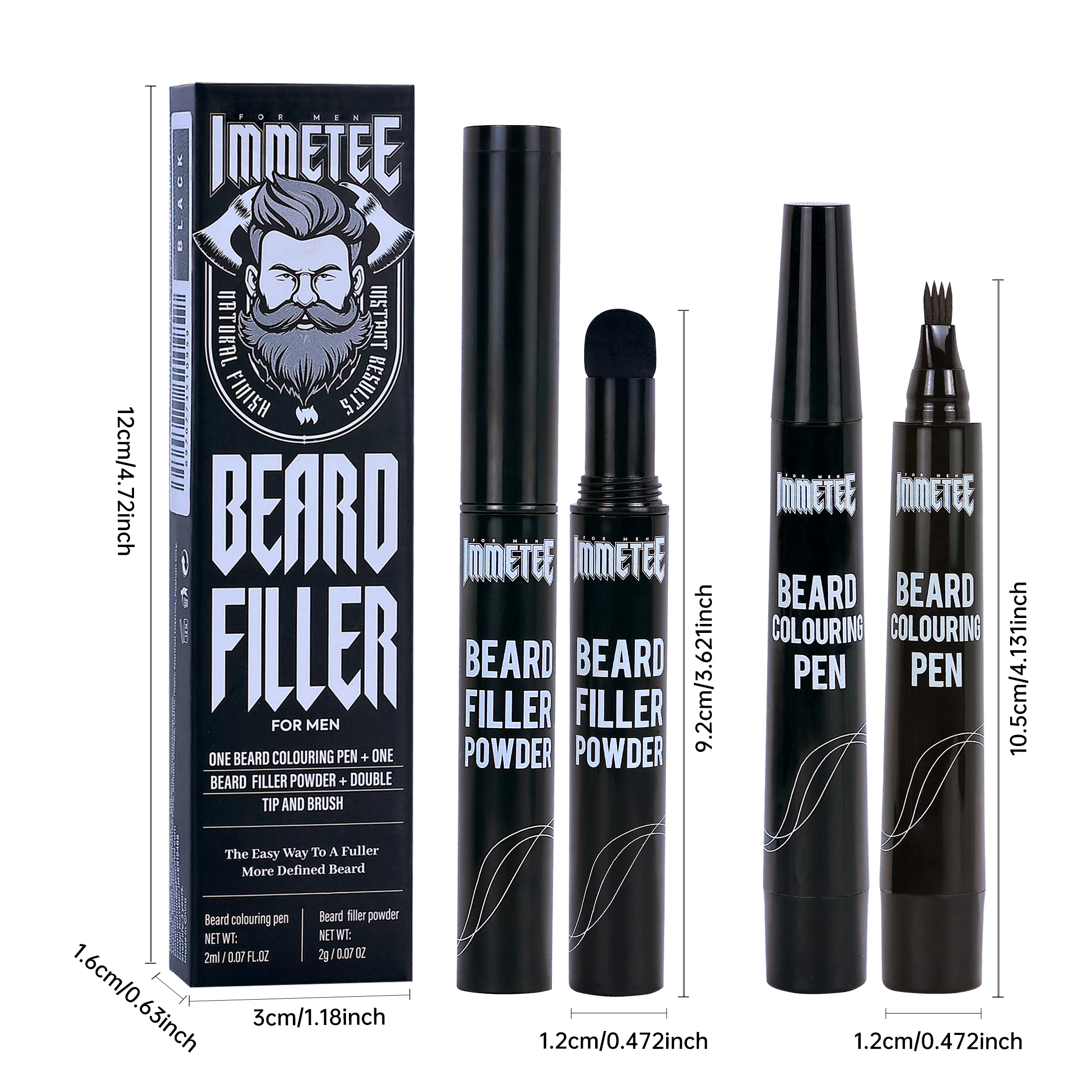 The immetee beard filler set for men is super light and easy to use, helping you define your beard contour with ease.Say goodbye to those annoying gaps and patches with our beard filler for men for a clean, groomed look Our beard pen for men features a longer-lasting, multiuse design. This beard pencil for men offers a four-pronged micro-fork tip and this beard filler pen for men creates life-like hair strokes that blend seamlessly with your beard. Use the included soft bristle beard brush for men to smooth out any overfilled spots, making it a great addition to any beard brush.